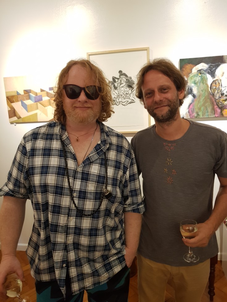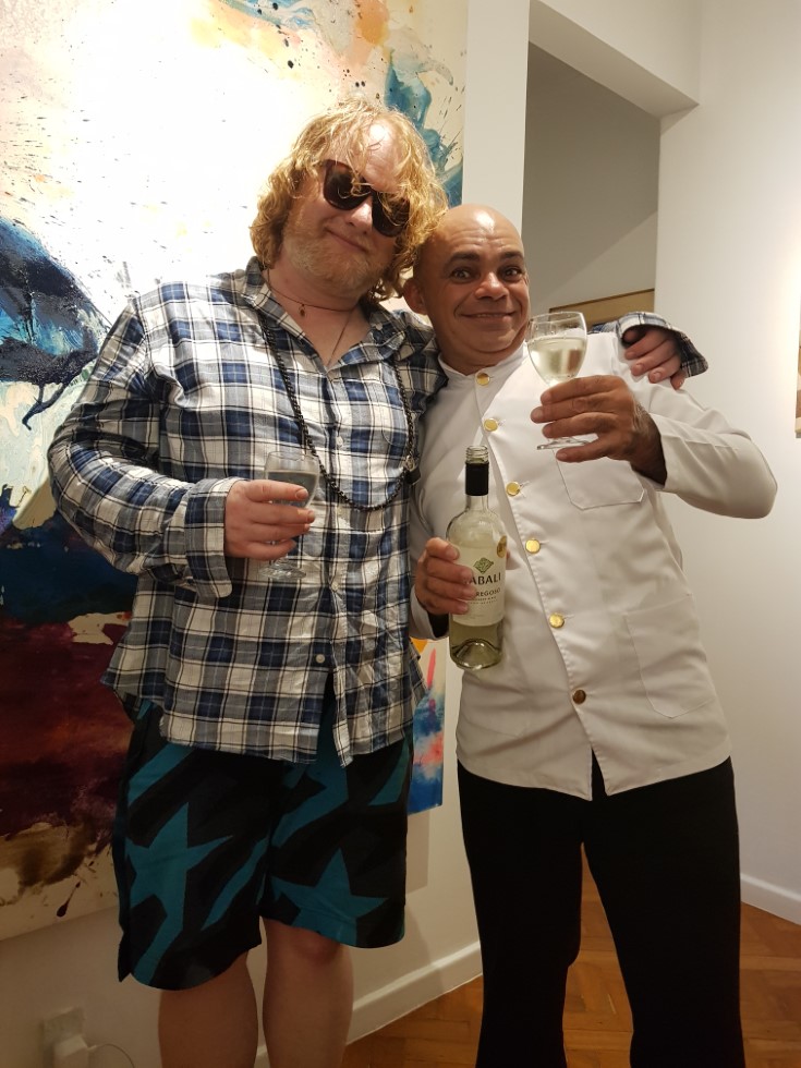 Aguardo voces: Quero agradecer o trabalho do Dejaílton, o melhor copeiro, butler, amigo e tudo aos artistas que cederam suas obras. Vamos falar deles em breve. Rolou um vinho branco extra gelado chileno Tabali e barquetes de especiarias de Quiches Marcela Polo e ainda bem casados de limão siciliano da Elvira Bem Casados, vamos ter várias degustações na redação aguardem.