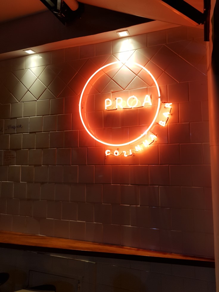 Meus amigos chegaram e a conversa fluiu. Antes trocarmos para a mesa eu subi no segundo andar e meus olhos se encantaram, um espaço delicioso e muito bem aproveitado. A arquiteta e decoradora Raquel Guerreiro fez um trabalho cheio de bossa e bom gosto em todo restaurante, porém o segundo andar é top. Ela quem assina o projeto do PROA. Delicioso, imagino uma noite de lua cheia ficar ali entre drinks e bate papo, um deleite ultra carioca.