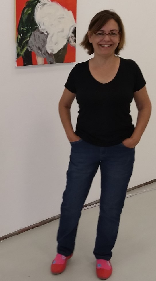 Minha pintura pode ser designada como mancha num sentido mais restrito, na qual não se destaca uma linha desenhada. Em meu processo, porém, começo as telas com um desenho rarefeito, um esboço com traços bem simplificados. A partir daí num decurso mais fluido, entram as manchas, as massas de cor, as áreas de tela que respiram, pinceladas que se sobrepõem em camadas e mais camadas. O pincel e as tintas são os que me conduzem nessa contradança.