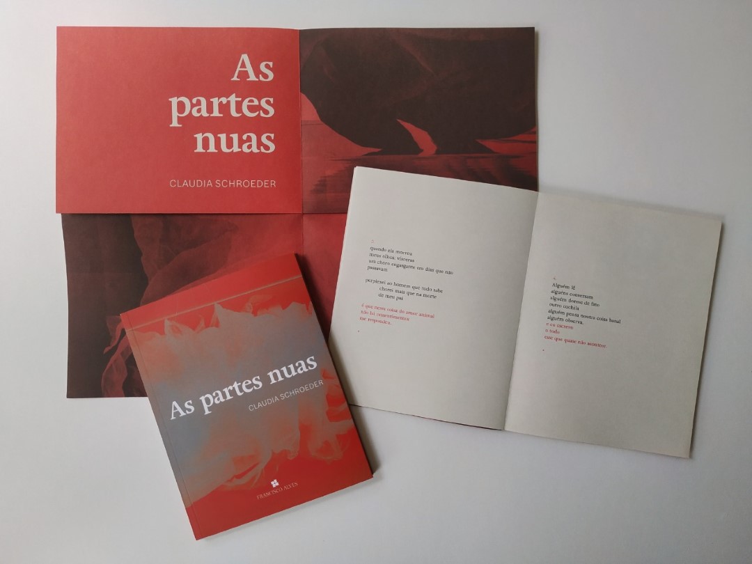 Depois de lançar virtualmente As partes nuas (editora Francisco Alves) em duas Lives com a participação do editor Carlos Leal, o designer Rico Lins e o poeta e tradutor Pedro Gonzaga em maio de 2021, a poeta gaúcha Claudia Schroeder está participando de eventos presencias onde o livro ganhará uma peça impressa com poemas inéditos.