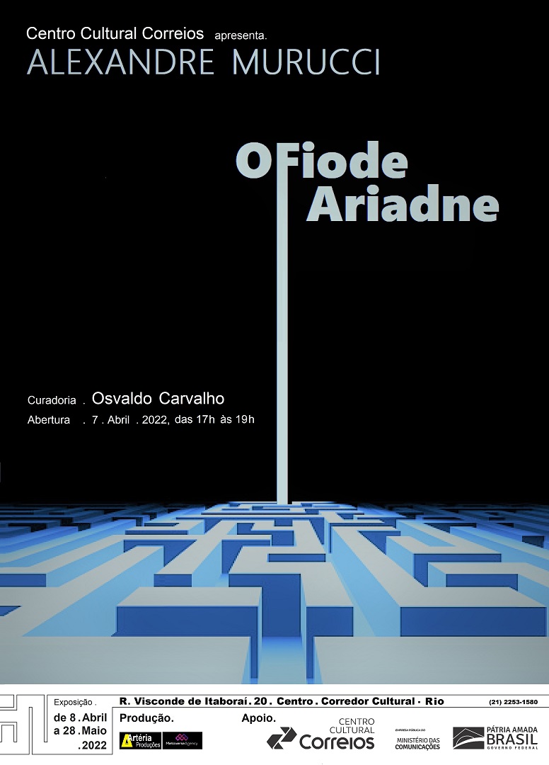 Abriu nesta sexta-feira (08/04) para público a mostra “O Fio de Ariadne“, individual do artista Alexandre Murucci, no Centro Cultural Correios – Rio, com curadoria de Osvaldo Carvalho. O trabalho é uma grande instalação interativa onde o público pode se inserir criando imagens pessoais para uso em suas mídias, dinâmica alinhada aos novos tempos de consumo de arte, que demanda cada vez mais interação com o público e imersividade, aqui proposta pelo artista em formato físico e lúdico.