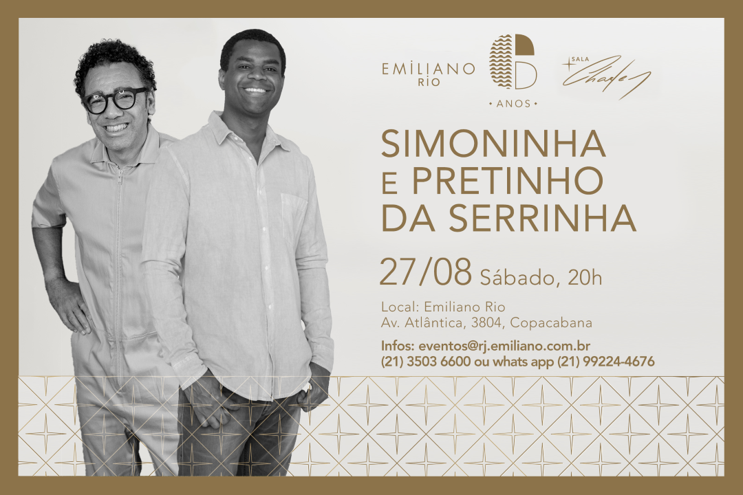 Pela primeira vez, esses craques se encontram para um show intimista, na sala Charles que traz de volta o clima da boemia carioca para celebrar 6 anos de vida do Hotel Emiliano na Cidade Maravilhosa!