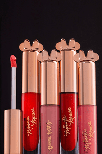 O batom líquido da coleção Minnie Mouse possui uma embalagem exclusiva com as orelhinhas e o clássico laço da musa atemporal da Disney. Um charme!