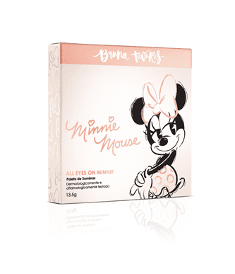 A paleta All Eyes On Minnie é uma paleta de sombras com embalagem luxuosa em preto e metalizado rose gold, também acompanha espelho. Possui fórmulas exclusivas e 9 cores divididas em diversos acabamentos como folheado brilhante, cintilante perolado, iridescente e mate aveludado.