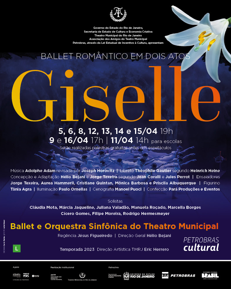 Com realização AATM e patrocínio Ouro Petrobras, música de Adolphe Adam, libreto de Théophile Gautier e concepção e adaptação de Hélio Bejani e Jorge Texeira (segundo Jean Coralli e Jules Perrot), a temporada estreia no dia 5 de abril, às 19h e contará com dez récitas – sendo uma apresentação fechada para escolas públicas – com a participação do Ballet e da Orquestra Sinfônica do Theatro Municipal (BTM), sob a regência do maestro Jésus Figueiredo.