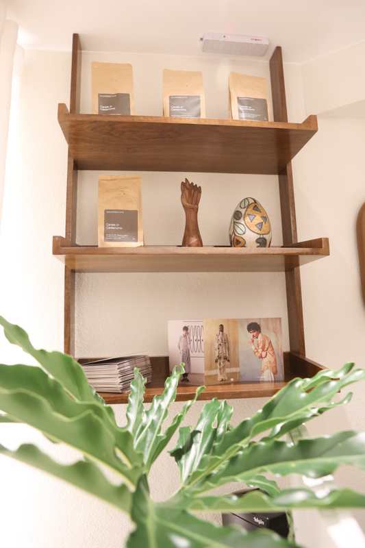 O mobiliário foi escolhido de forma certeira, e conta com peças assinadas pelo atelier do mestre brasileiro em design, Sérgio Rodrigues, adorado por André. O estilo contemporâneo é estendido com cadeiras em mogno e parafina, feitos por Rafael Triboli, que se destacam sobre o carpete verde oliva do provador, em um ambiente agradável com divisórias de madeira.