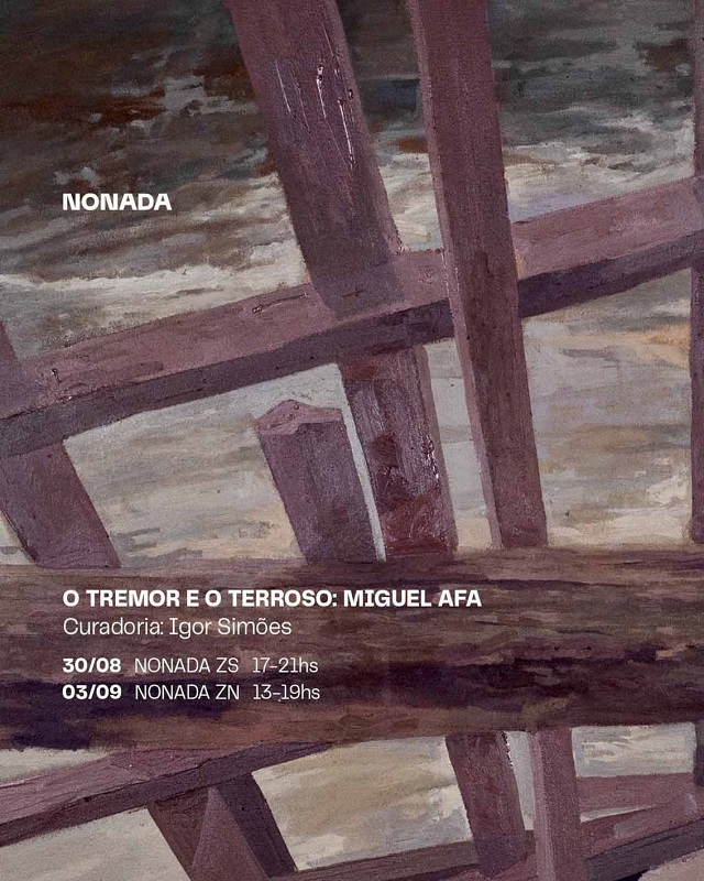A NONADA, jovem espaço de arte carioca, abre a exposição de seu artista mais significativo, e a maior já feita na galeria, fechando um ciclo iniciado na inauguração em novembro de 2022. Miguel Afa, primeiro artista representado pela NONADA, tem essa data marcada desde o dia 1 dessa parceria. “O Tremor e o Terroso: Miguel Afa”, sob curadoria de Igor Simões, ocupa seus dois endereços – Copacabana (ZS) e Penha (ZN) – com 40 pinturas desse artista considerado, por muitos, “um dos mais importantes pintores da sua geração”, como diz o curador.