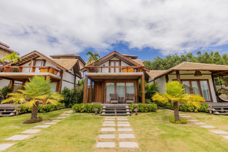 Com falésias douradas, restingas preservadas e mar de águas mornas, o lugar oferece a sensação rara de ter a praia só para você. As acomodações — de bangalôs a casas com até seis suítes — foram pensadas para proporcionar bem-estar e integração total com o ambiente.
