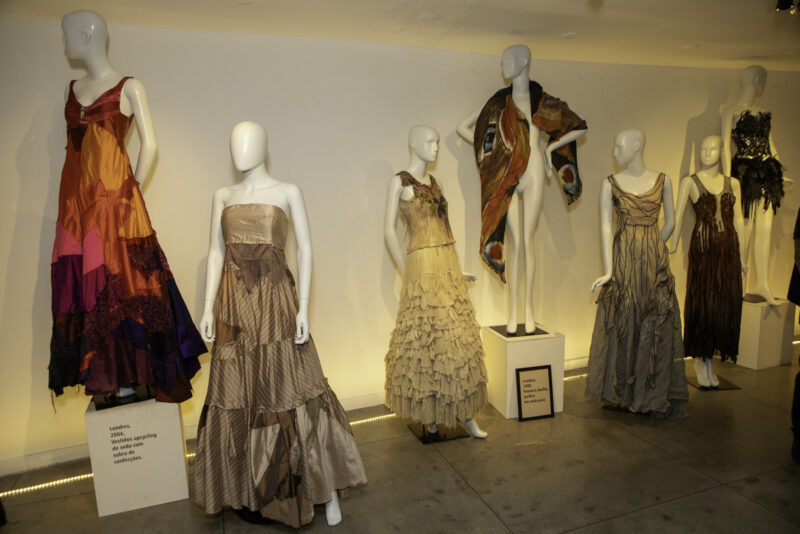 O criador de moda Fernando Viana abriu, na noite do último sábado (21/06), a mostra “Entre Linhas — Fernando Viana , 25 anos de upcycling com arte”. Com a exposição, que pode ser visitada no Parque Glória Maria, em Santa Teresa, zona central do Rio de Janeiro, o artista expõe algumas das suas peças mais representativas criadas ao longo de sua trajetória na moda, iniciada em 1998, quando fixou residência em Londres e migrou da fotografia para a criação de moda.