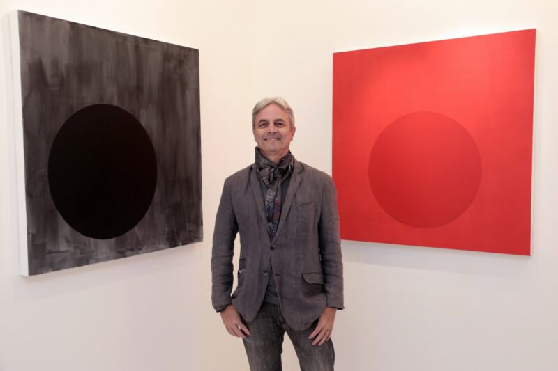 “As palavras muitas vezes estão presentes nos trabalhos que faço, o NOVO e o SÓ são alguns deles. Nas minhas aquarelas sempre coloquei letras ou números. Tenho um quadro chamado Peripatética decorrente de quando caminhava nas ruas e ouvia fragmentos de coisas faladas pelas pessoas passantes. James Joyce foi um autor que eu sempre quis ler. Comecei a ler Ulysses e achei que não estava entendendo nada. Tive a oportunidade de ler o livro com um grupo de leitura orientado por Marcelo Backes e foi aí que no projeto que eu vinha desenvolvendo em pintura denominado Círculos Erráticos decidi introduzir fragmentos dos trechos de Ulysses.