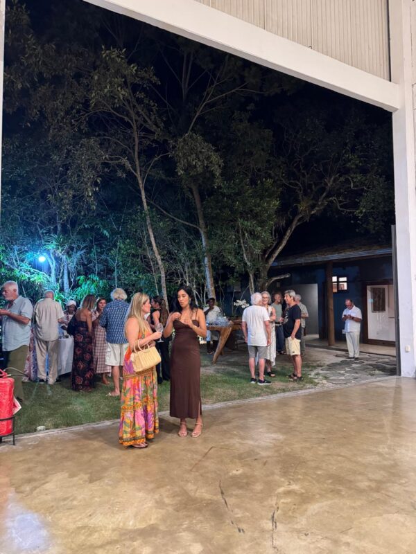 Entre conversas animadas e olhares atentos às telas, a noite confirmou o interesse crescente pelo trabalho de Maitê — um daqueles fins de tarde em Trancoso em que arte, natureza e bons encontros se encontram no mesmo compasso.