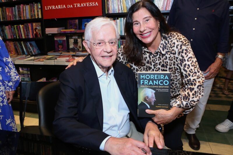 Aspásia também esteve presente e participou da sessão de autógrafos ao lado do autor. Ao longo da noite, Moreira Franco conversou com leitores e convidados sobre os temas abordados no livro, enquanto a livraria permanecia cheia — sinal de que política e memória continuam despertando grande interesse entre os leitores.